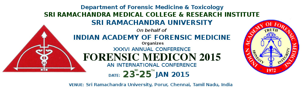 It gives me immense pleasure and great privilege to announce that Department of Forensic Medicine & Toxicology, Sri Ramachandra Medical College & the Research Institute, Chennai is hosting the 36th Annual Conference of Indian Academy of Forensic Medicine from 23 to 25 January 2015. Chennai, the metropolitan and cosmopolitan city of South India is known for its typical Indian Culture, hallowed places of worship and also for its tranquil, intellectual, vibrant, hospitable people.